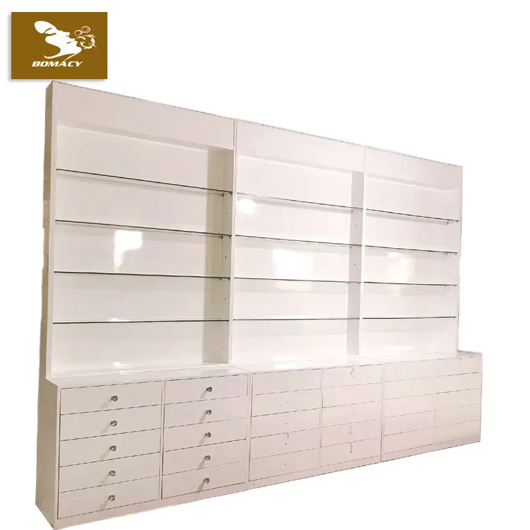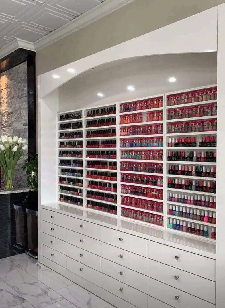 Beautiful Modern Design Nail Salon Furniture Polish Floor Standing Nail Rack With Drawers
