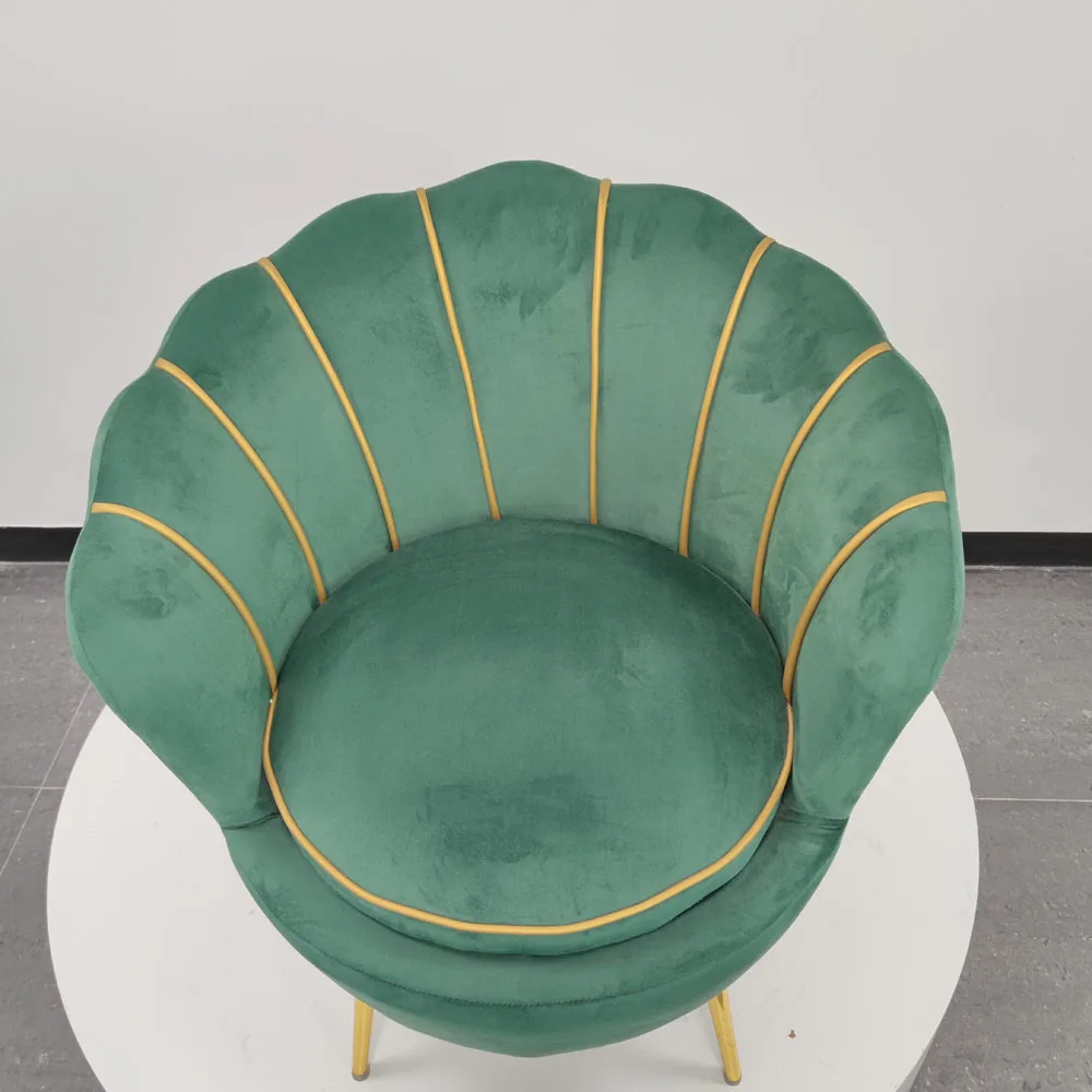 Beauty Salon Modern Design Cafe Single Sofa Living Room Shell Chair Customer Waiting Time for Green Velvet Metal Arm Rest