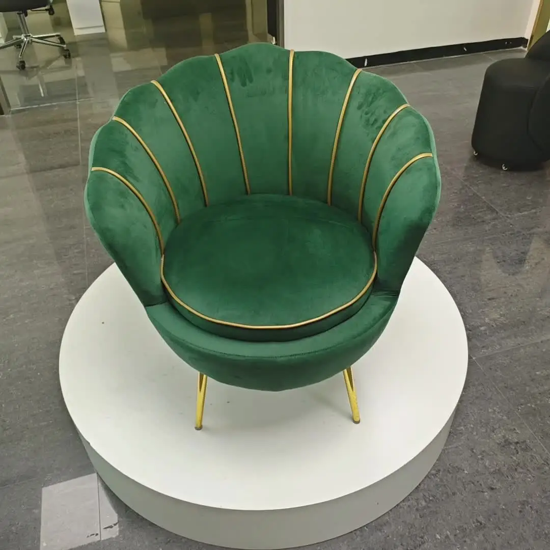Beauty Salon Nail Chair Modern Design Cafe Single Sofa Fabric Green Velvet Armchair Shell Shaped Chair
