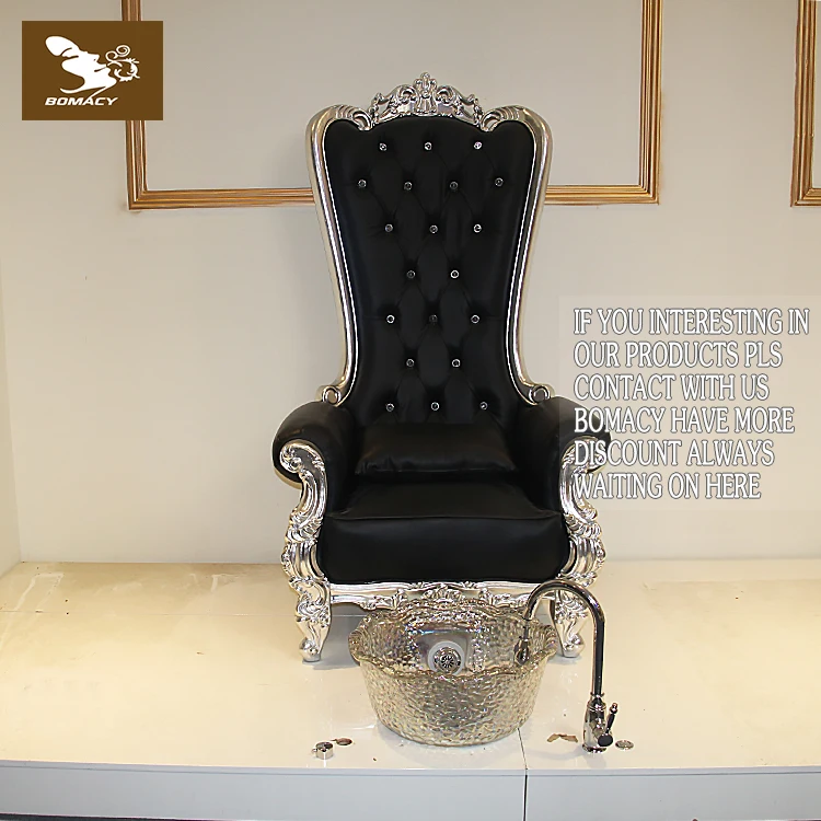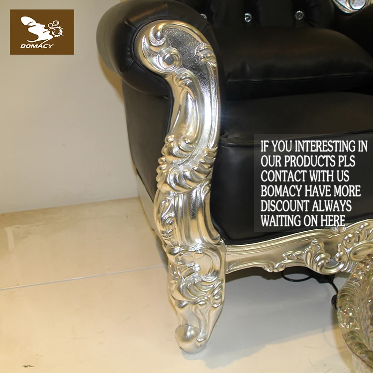 Bomacy Beauty Salon Furniture High Back Luxury European Style Silver Black Pedicure Chair Throne Chair