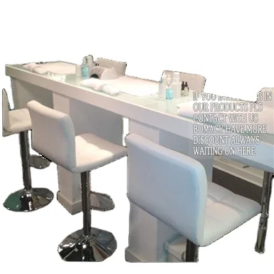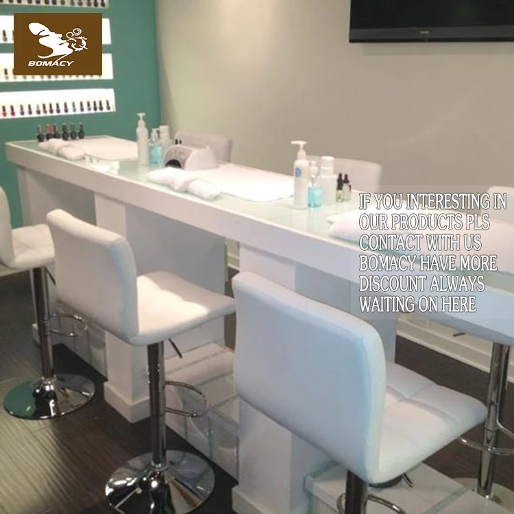 Bomacy Beauty Salon Furniture Modern Three Seat White Wooden Light Luxury Manicure Table for Sale
