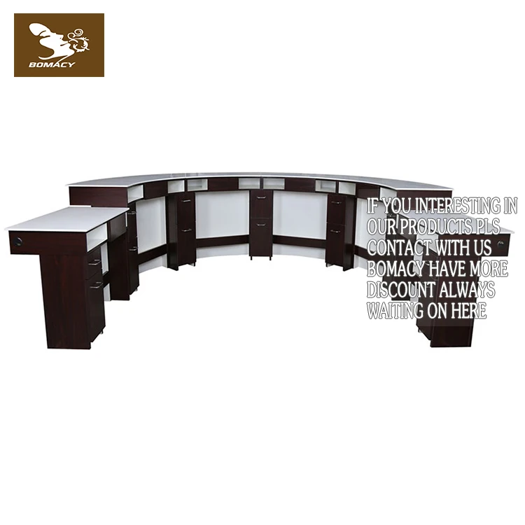 Bomacy Curved Luxury Beauty Salon Furniture in Black and Brown Colors Desk Beauty Salon Furniture for Sale