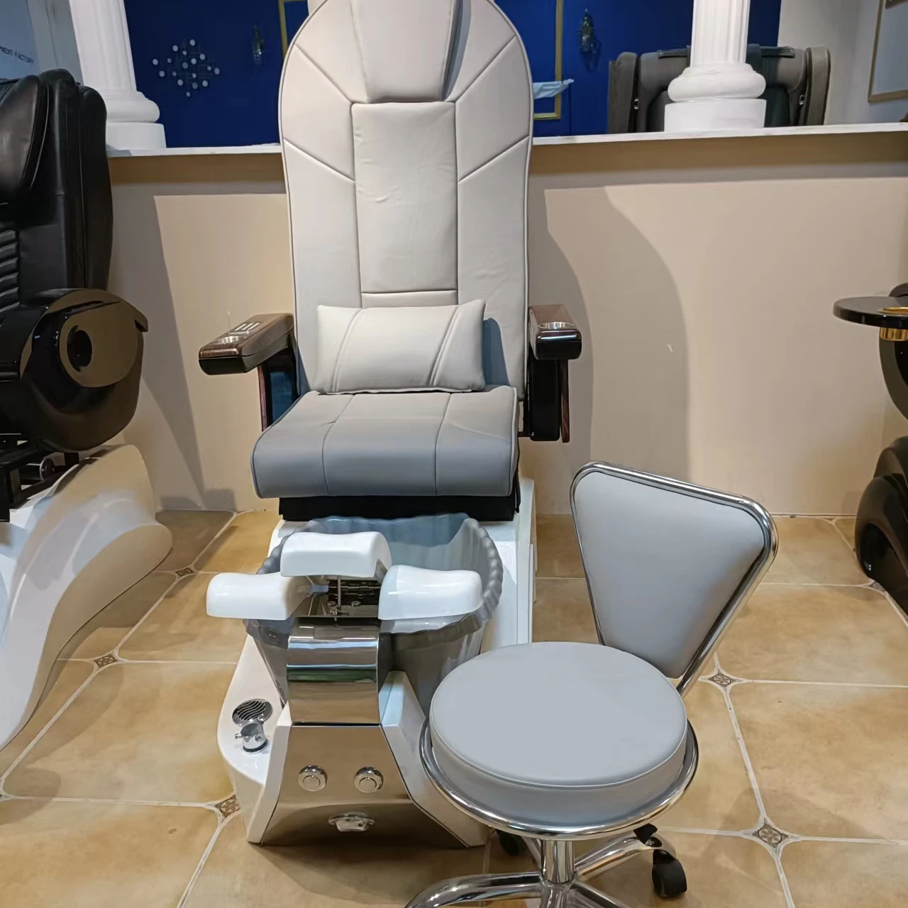 Bomacy Grey Modern Hot Sale Nail Salon Luxury Pipeless Whirlpool Foot SPA Massage Pedicure Chair
