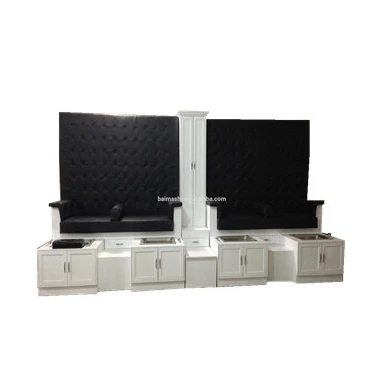 Bomacy Hot Sale Beauty Salon Furniture Black High Back Double Pedicure Station/Bench/Chair