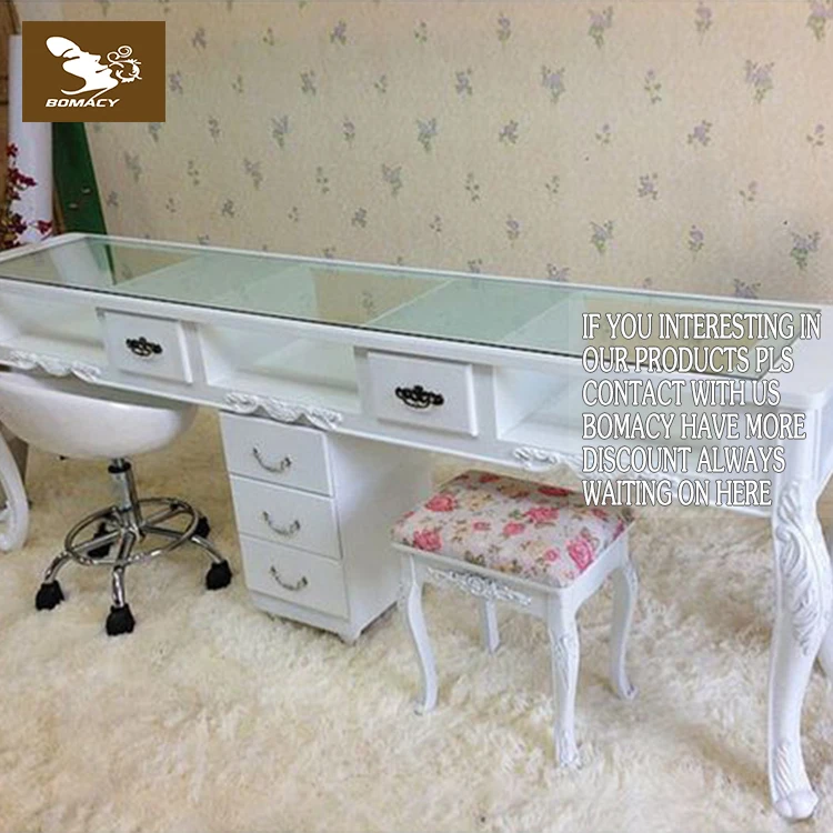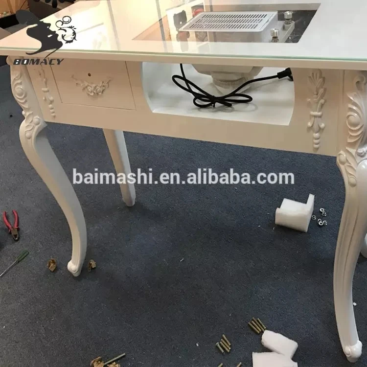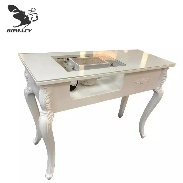 Bomacy Hot Sale European Style White Antique Luxury Nail Salon Furniture Manicure Table