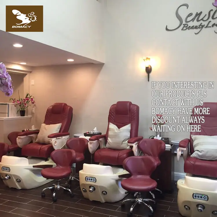 Bomacy Hot Sale Modern Fashion Red Foot SPA Salon Chair Massage Pedicure Chair With Bowl