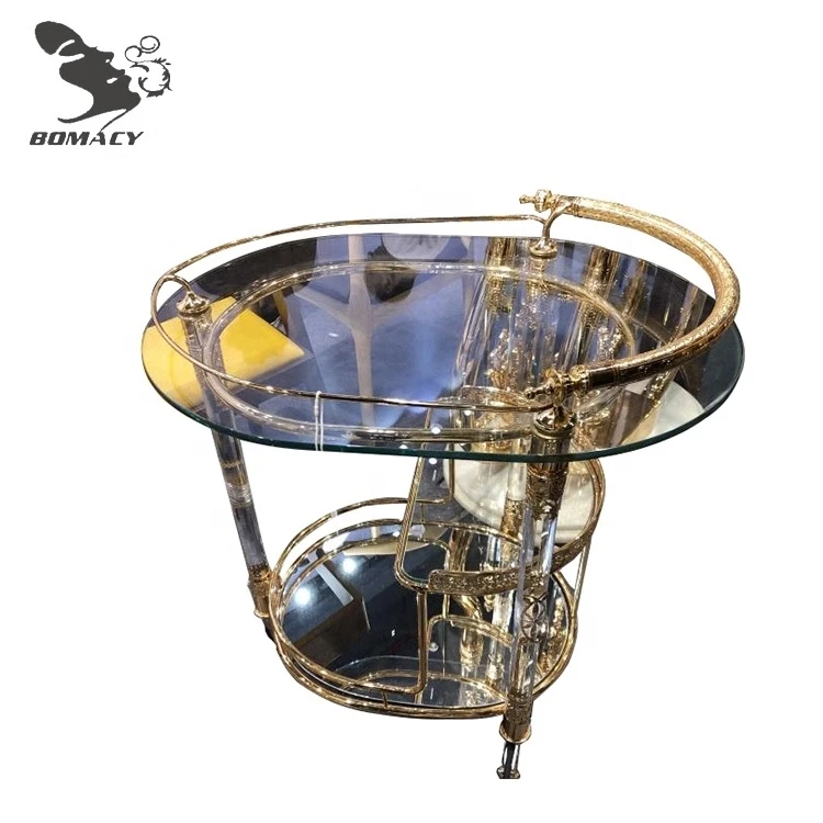 Bomacy Hot Sale Modern Luxury Beauty Salon Furniture Gold Glass Top Hair Salon Trolley for Sale