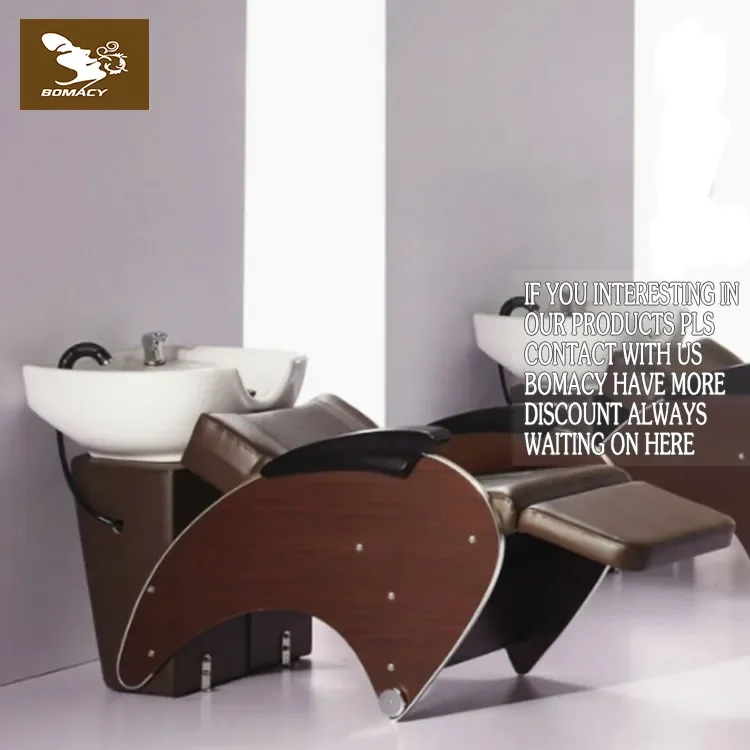 Bomacy Hot Sale Wooden Washing Hair Salon Furniture Shampoo Chair With Bowl