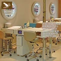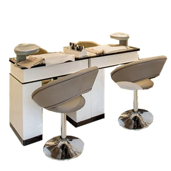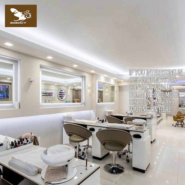 Bomacy Low Price Used Beauty Salon Furniture Wood Nail Manicure Table With Fans for Sale Light Luxury