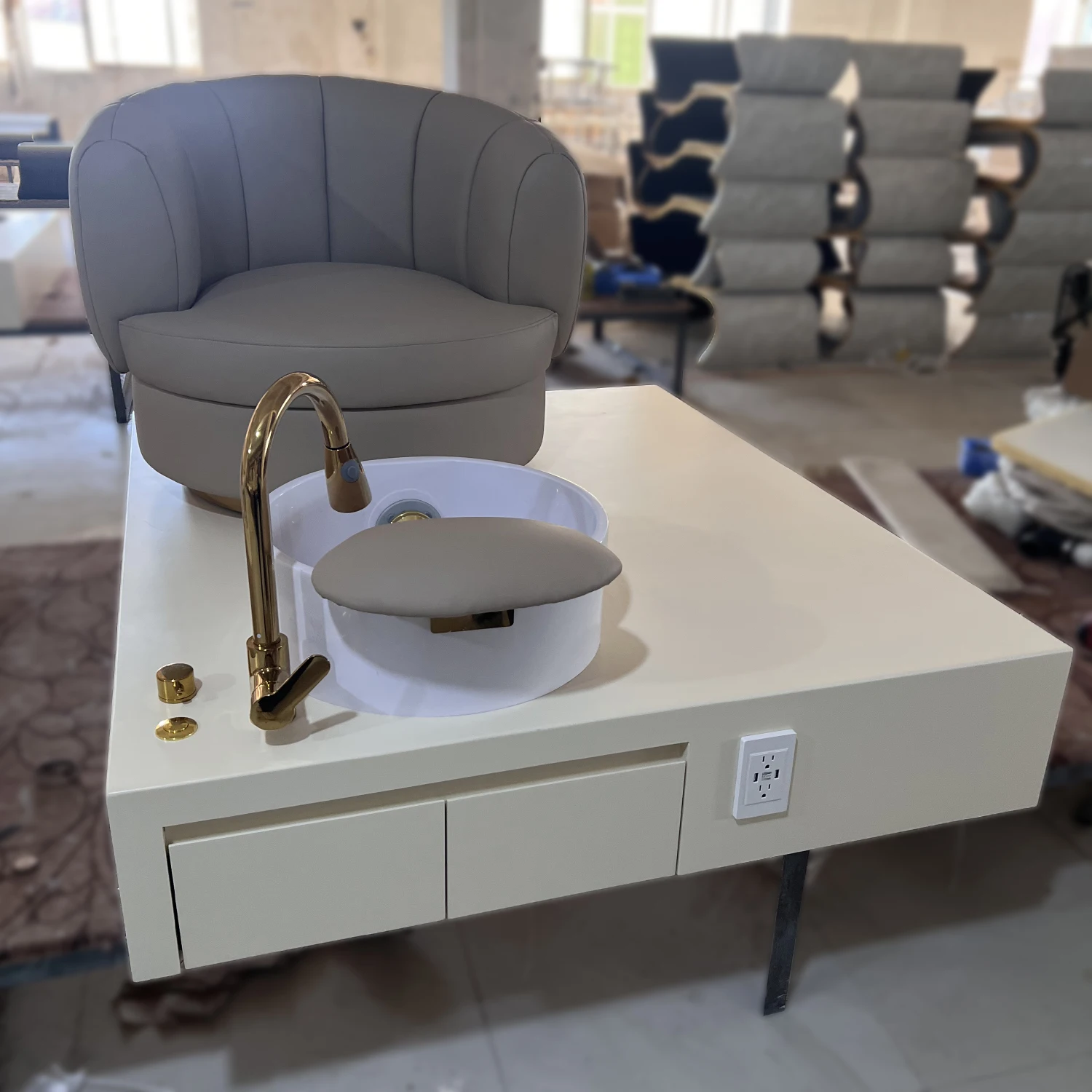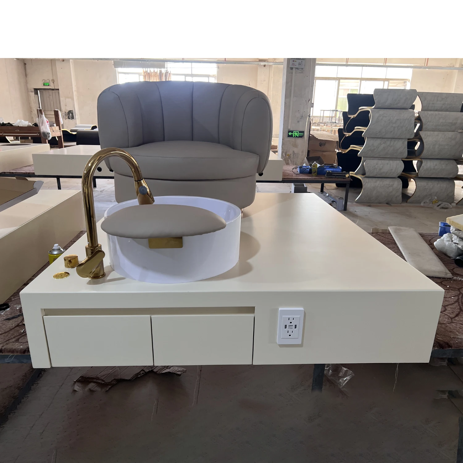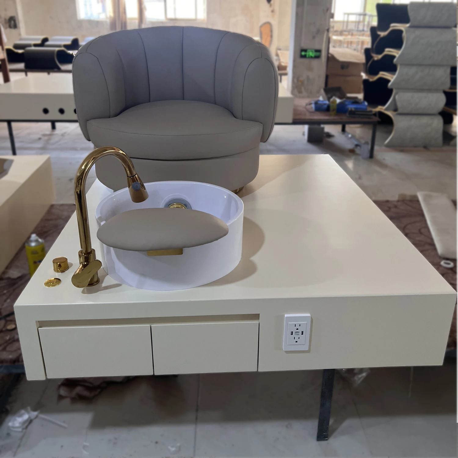 Bomacy Luxury High Quality American Style High Comfortable White Manicure Pedicure Chair With Foot Spa for Customization Sale