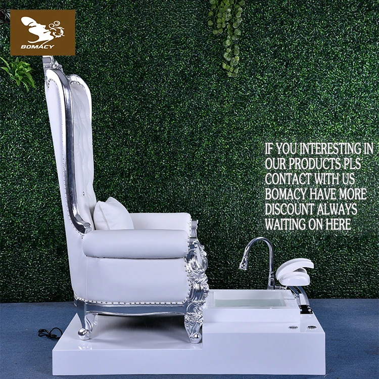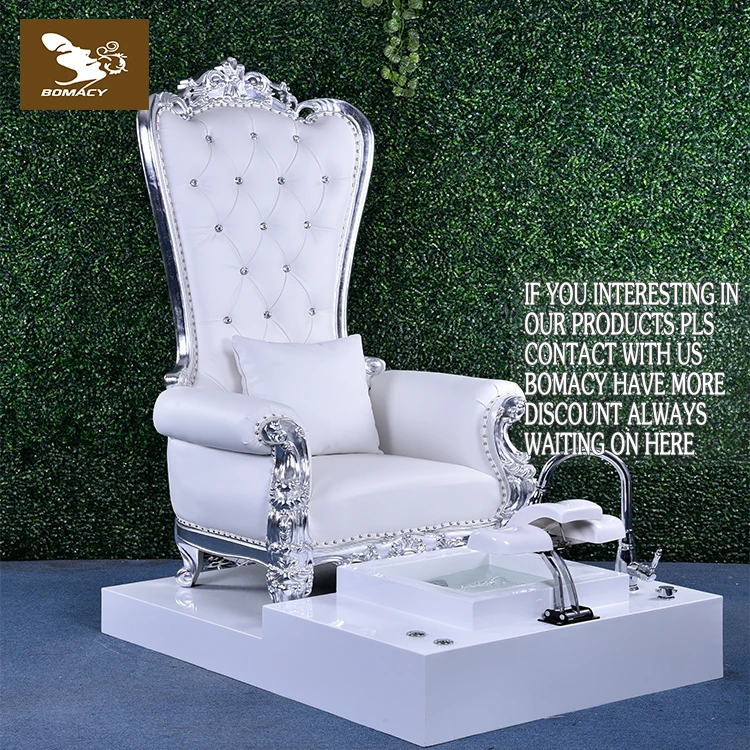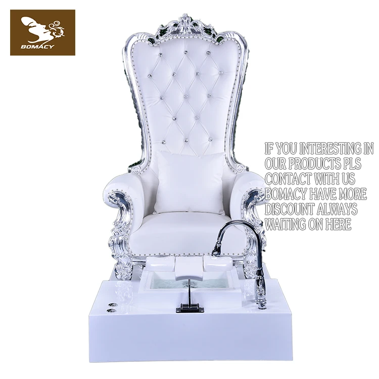 Bomacy popular light luxury salon furniture cheap price carved wood luxury white throne pedicure chair