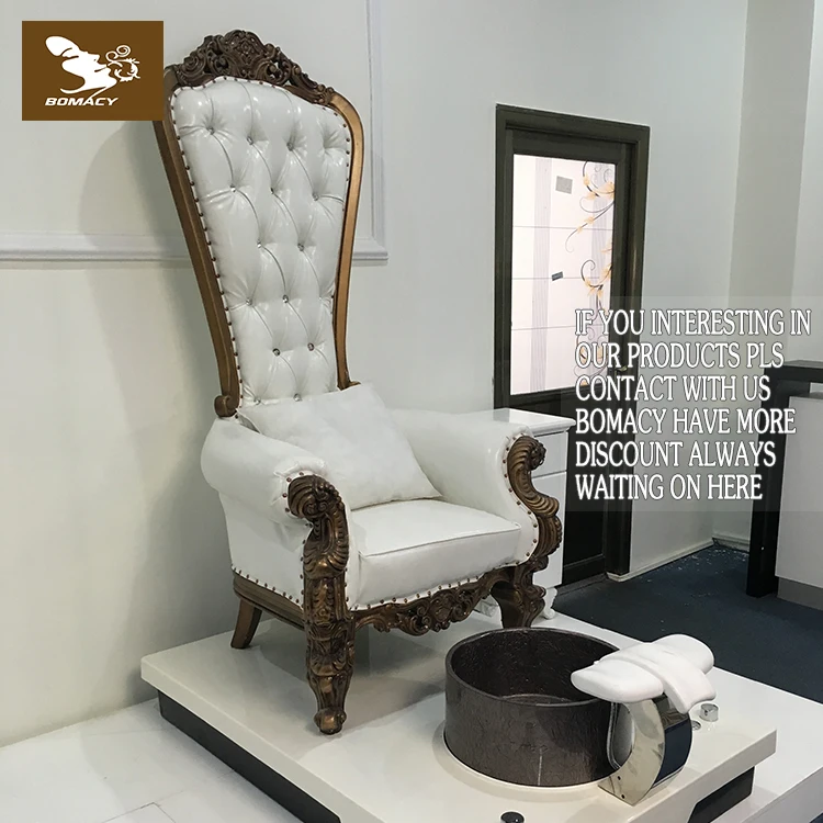 Bomacy Popular Salon Furniture Cheap Price Wood Carved Luxury Back Throne Pedicure Chairs