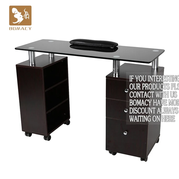 Bomacy Rolling Nail Desk with Dust Collector Cheap Nail with Vent Salon Manicure Furniture Manicure Light Luxury Nail Table