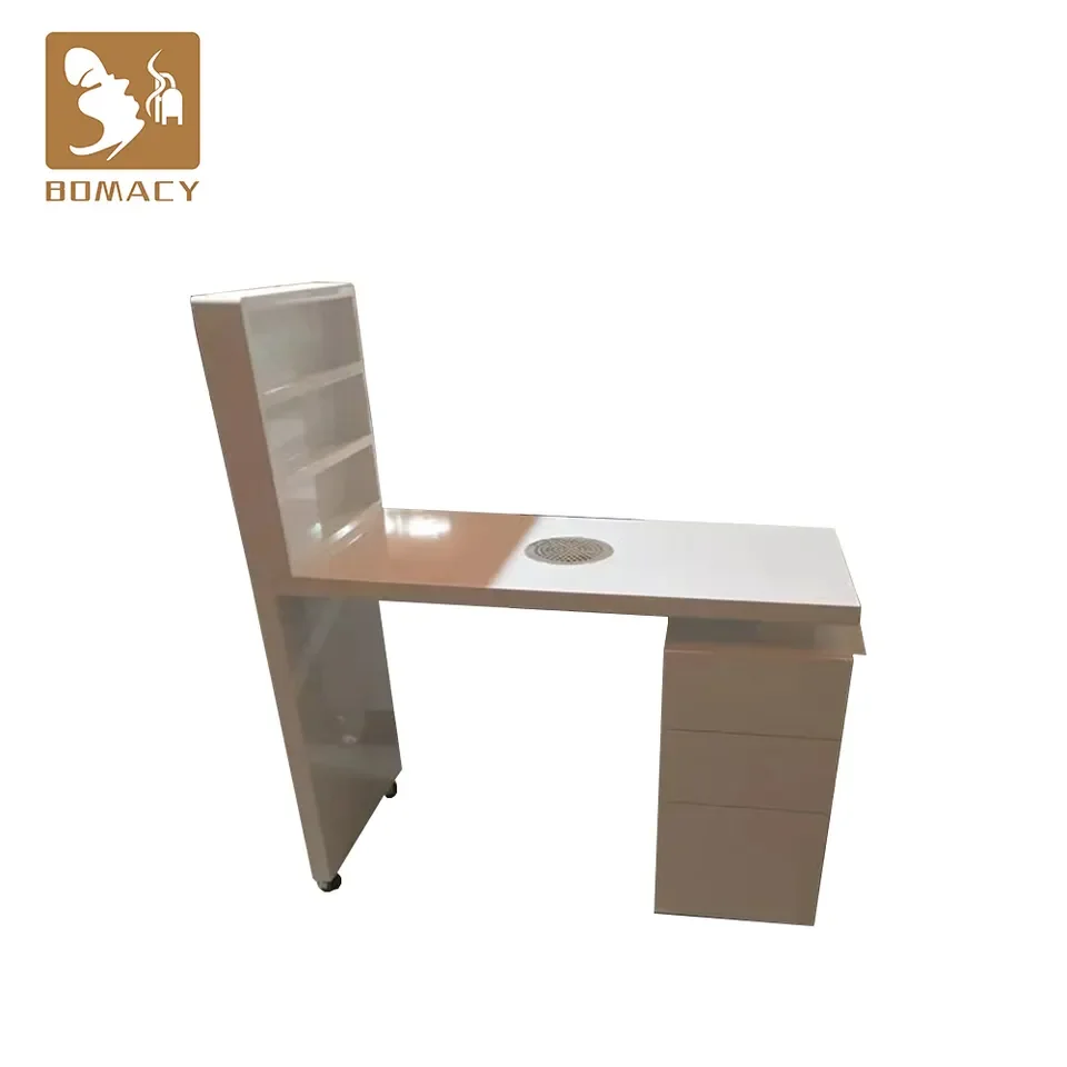 Bomacy Salon Furniture Manicure Set Wheels to Move Around Wood Nail Salon Manicure Table for Sale Light Luxury