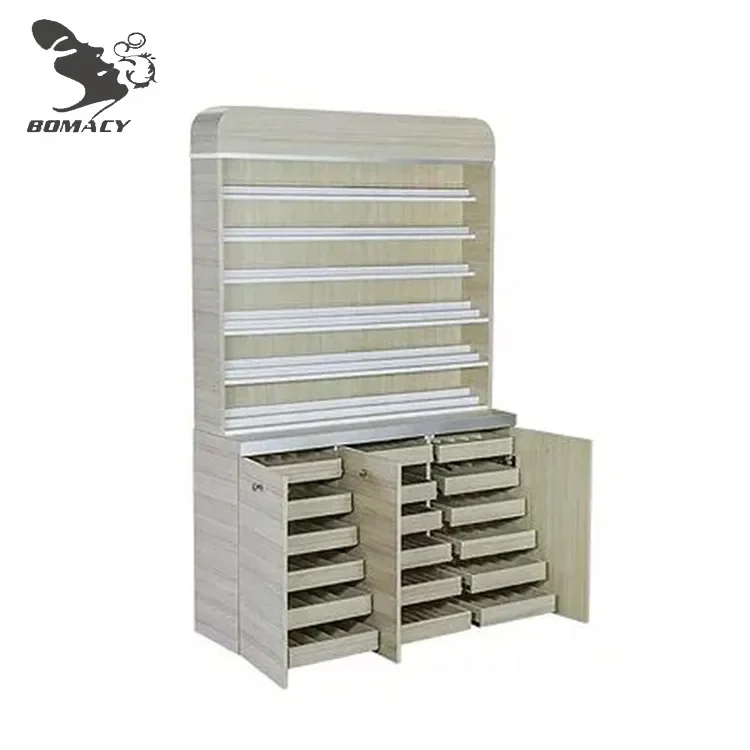 Bomacy Salon Furniture Wooden Nail Show Area Nail Rack With Drawers For Sale