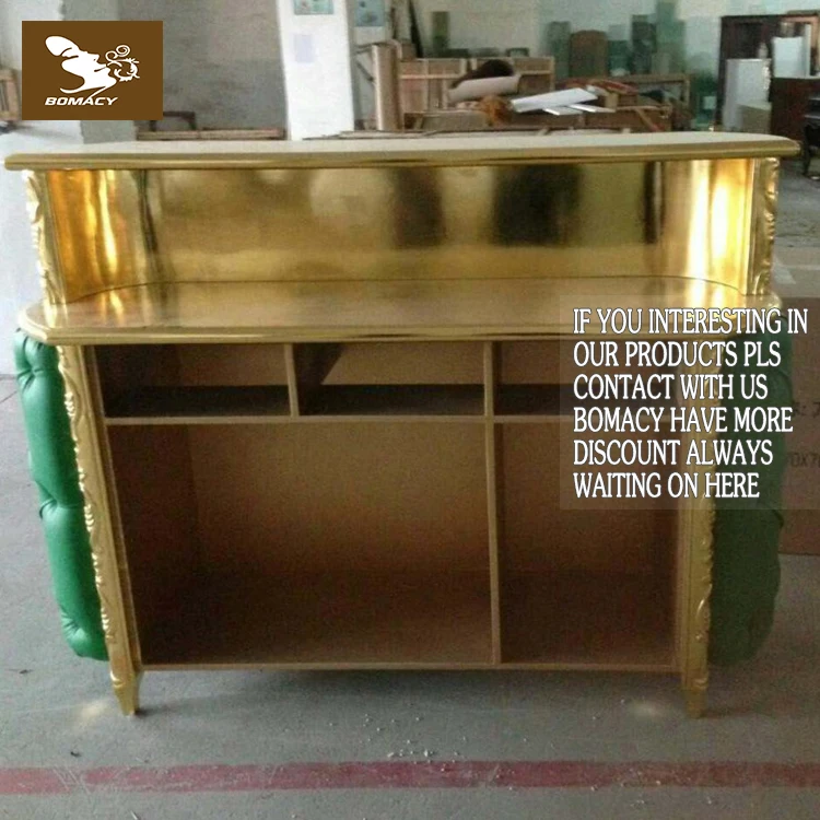 Bomacy Special Luxury Design Gold Used Beauty Salon Furniture Reception Desk For Sale