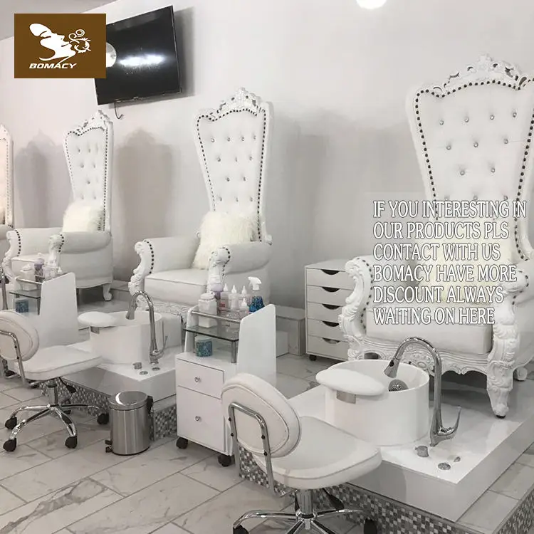 Bomacy White Leather and White Wood Frame Salon Furniture SPA Luxury Throne Pedicure Chair