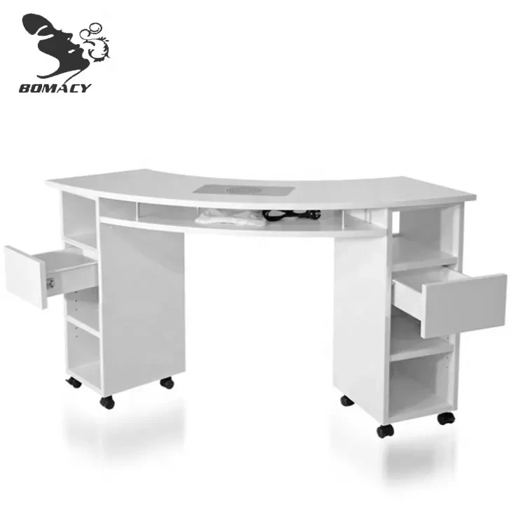 Bomacy White Nail Table Professional Salon Nail Modern Luxury Nail Curved Table and Chair