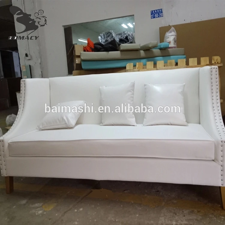 Bomacy Wholesale White Elegant Salon Furniture Triple Seats Waiting Sofa For Sale