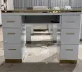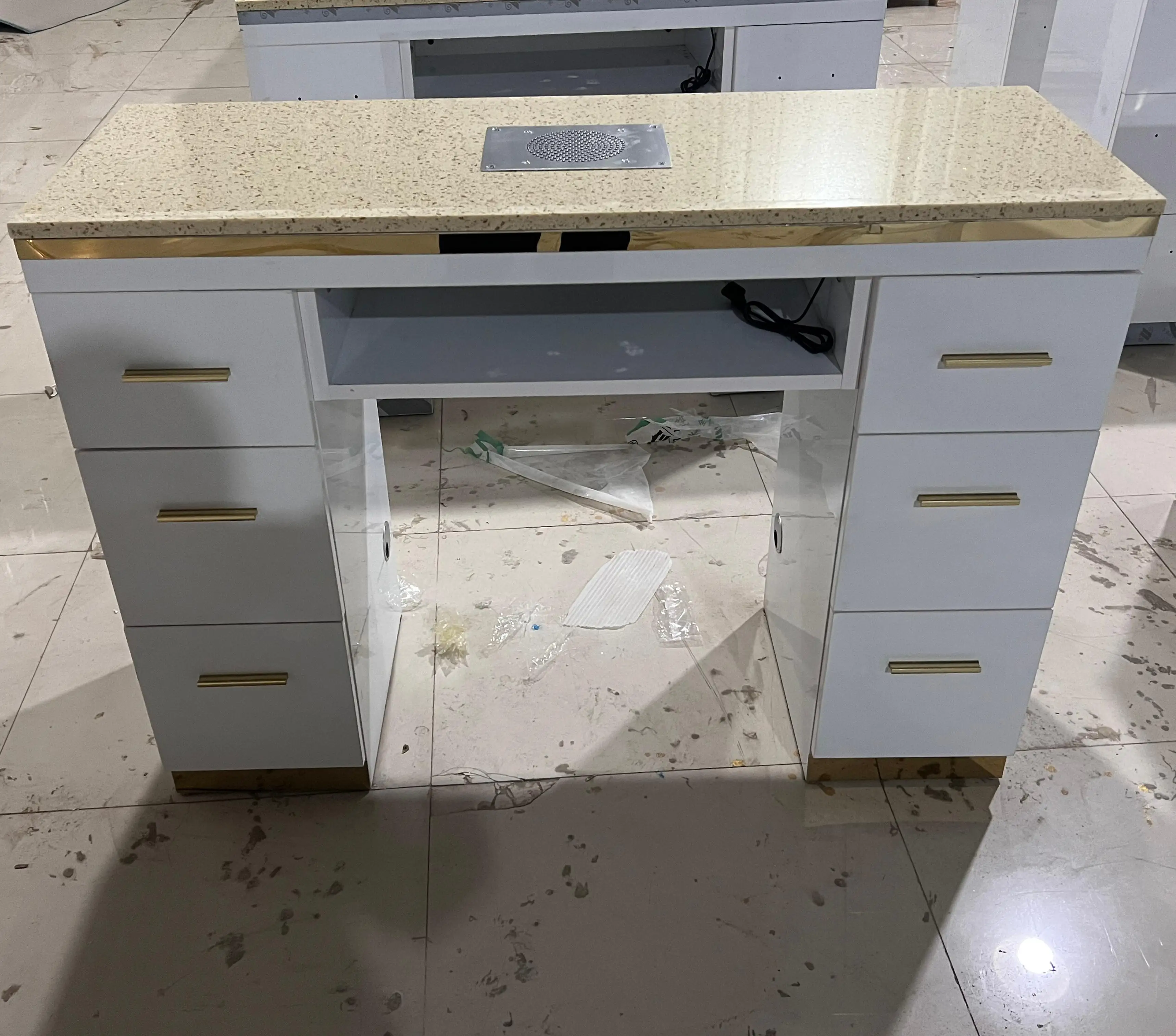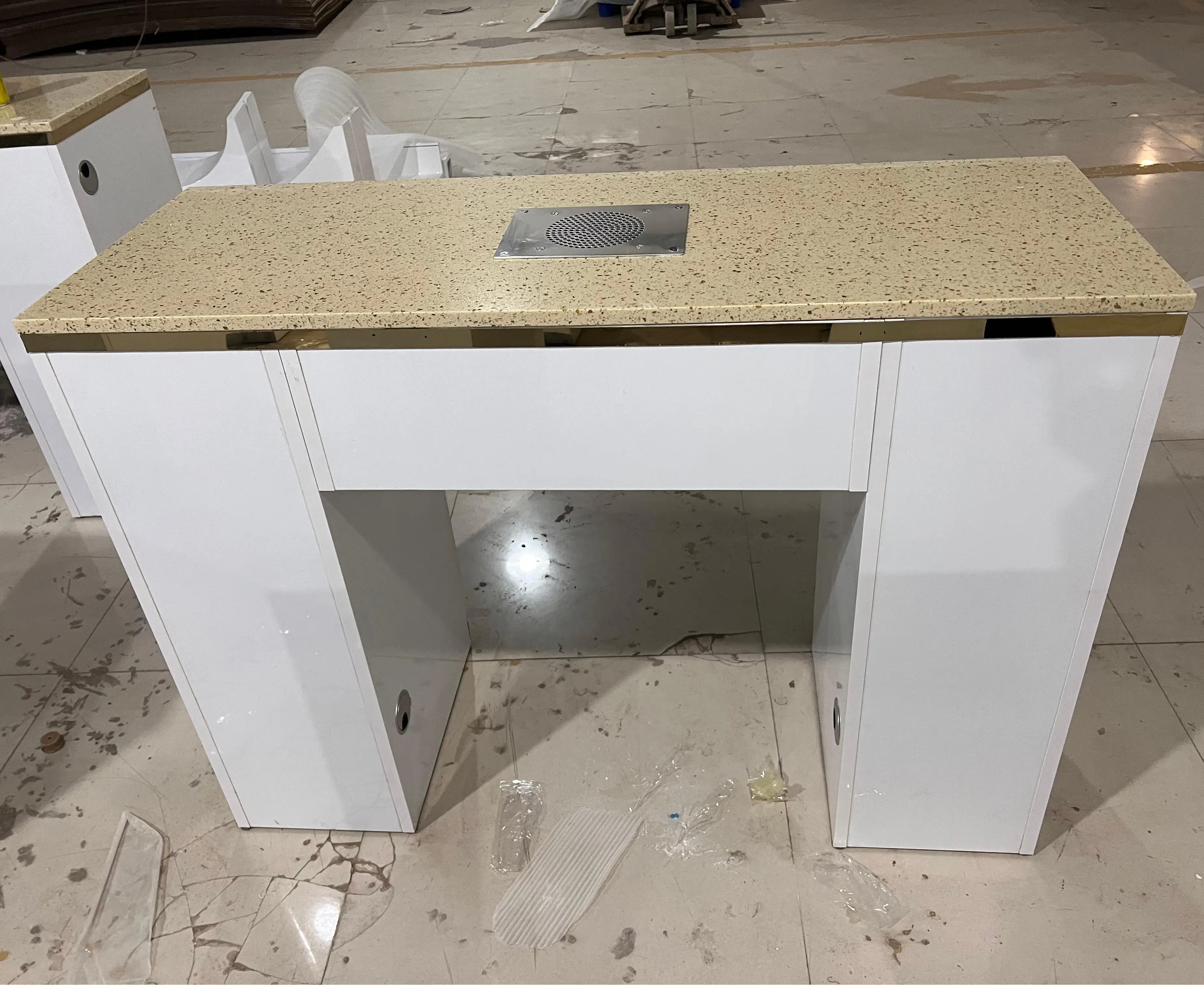 Factory Wholesale Simple White Nail Station Furniture Manicure Table with Degin Gold Line