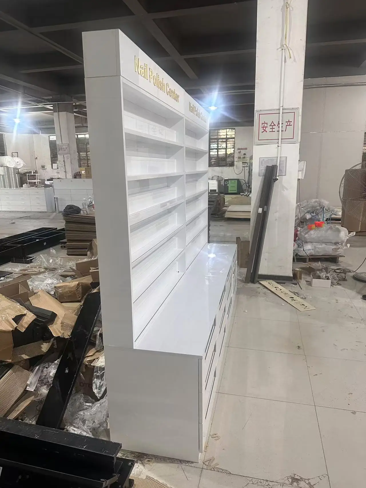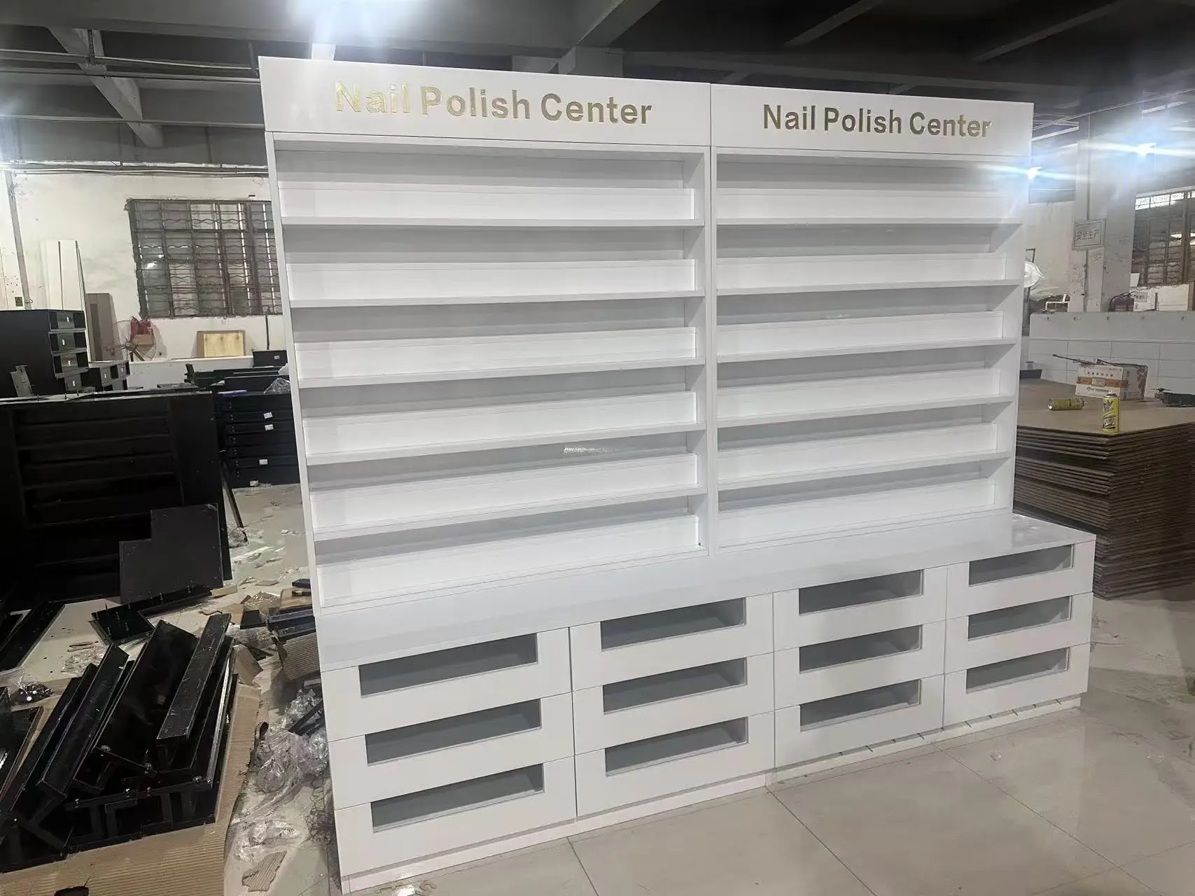 High Quality Popular Modern Design Nail Salon Furniture Polish Floor Standing Nail Rack With Drawers