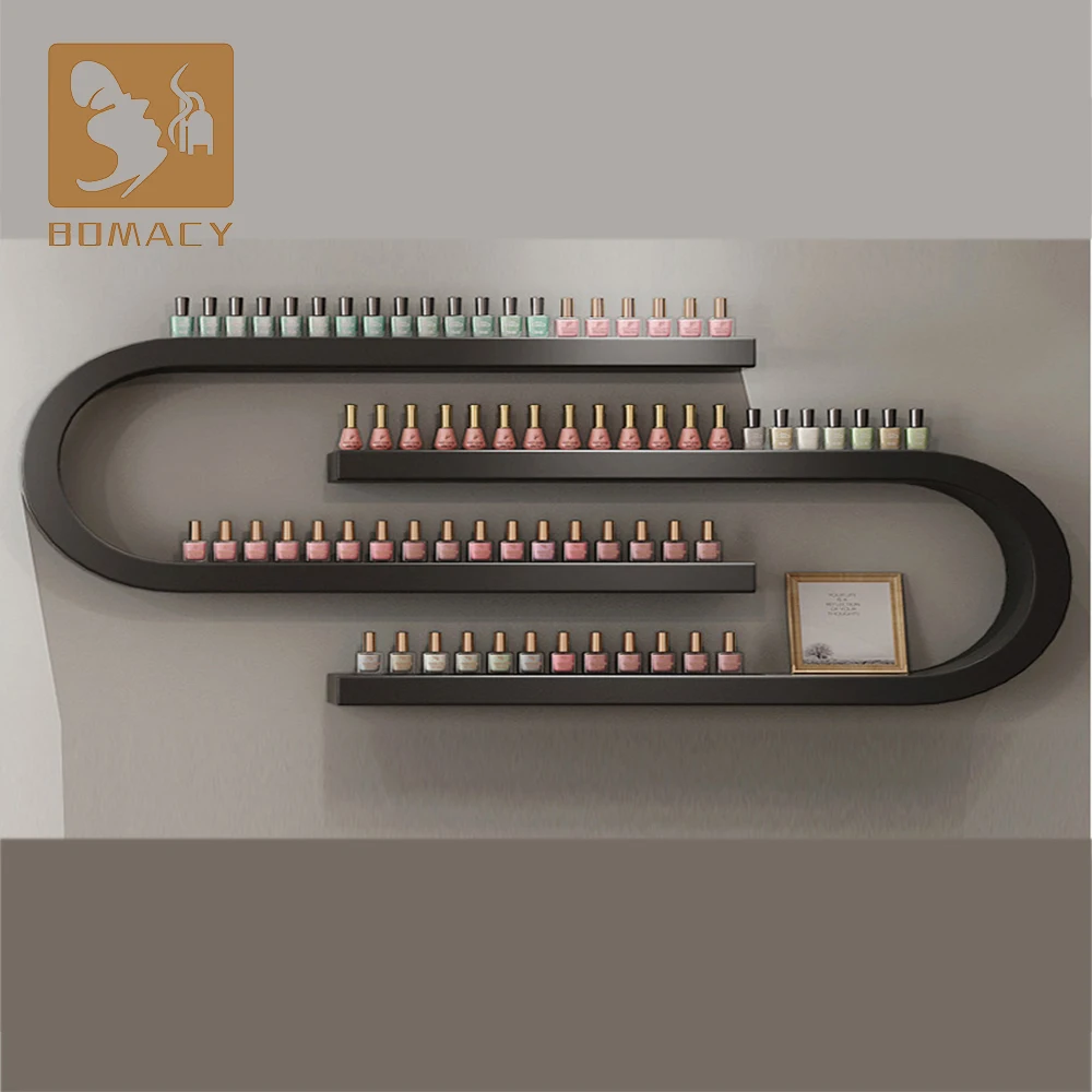 Klar Polish Nail Art Practice Stand Shop Design Business Cosmetic Shelves Wall Mount Hair Salon Color bar Display Cabinet