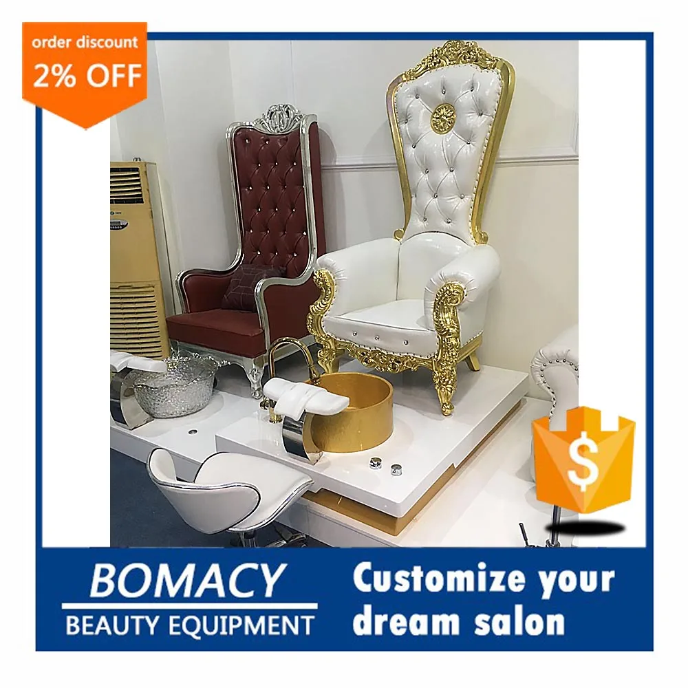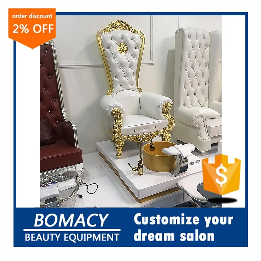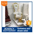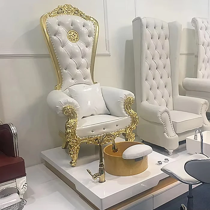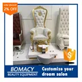 Light luxury salon furniture High back white gold fabric pedicure chair with portable pedicure SPA ceramic foot bath