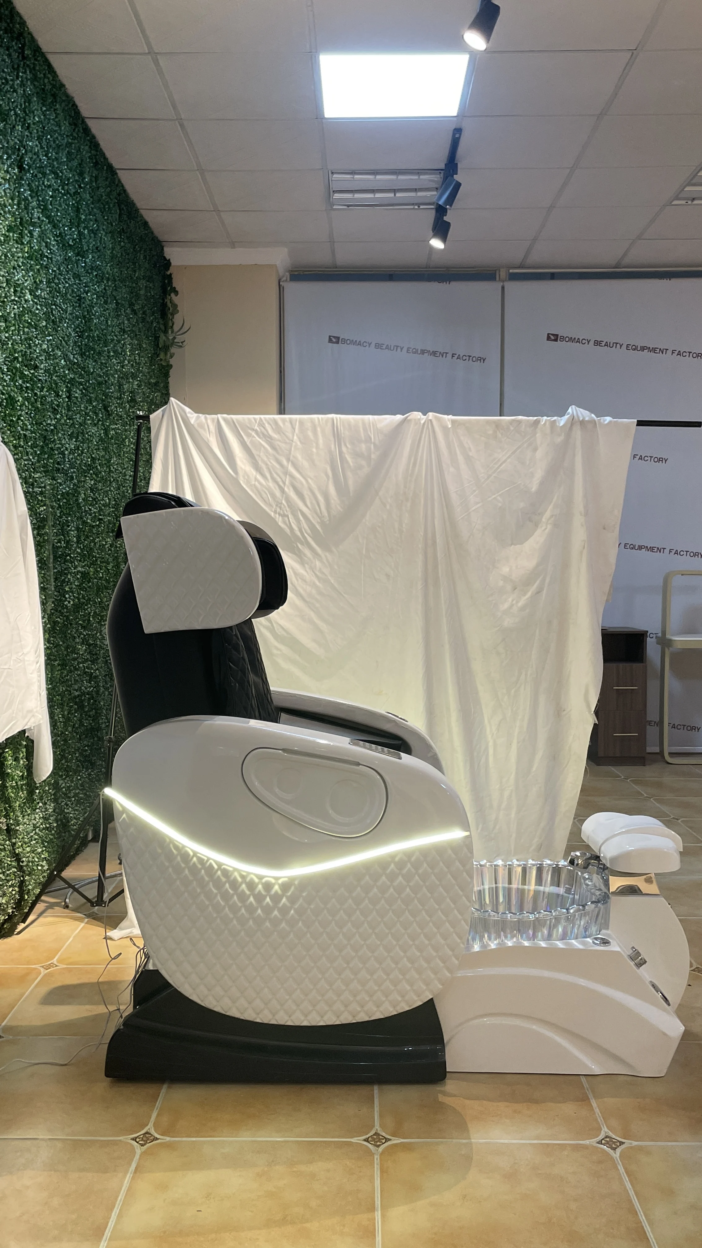 Stainless steel used pink white black modern luxury full body with back nail salon furniture manicure pedicure massage chairs