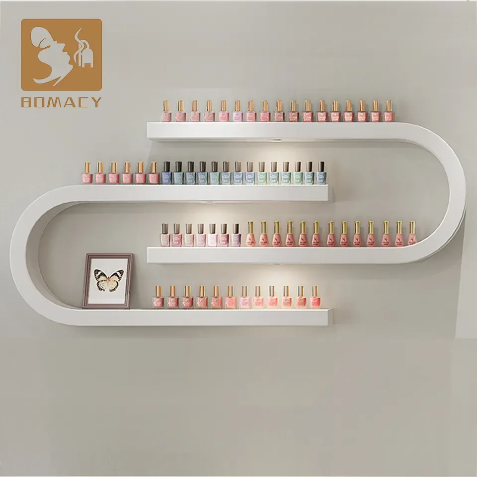 Wall Nail Rack Wood Shelves for Cosmetic Store Klar Rotating Acrylic Art Practice Polish Display Stand Nail Polish Racks
