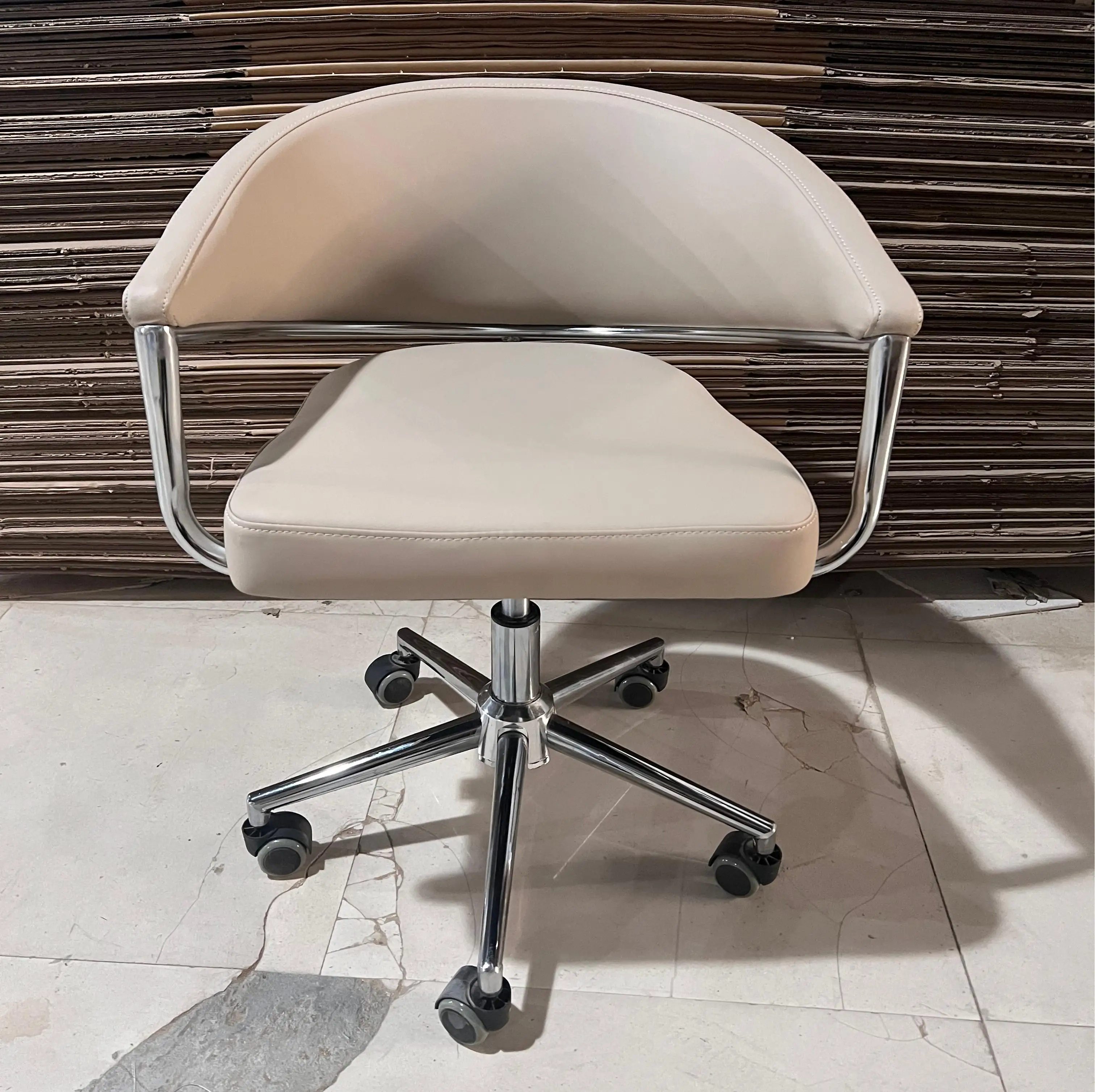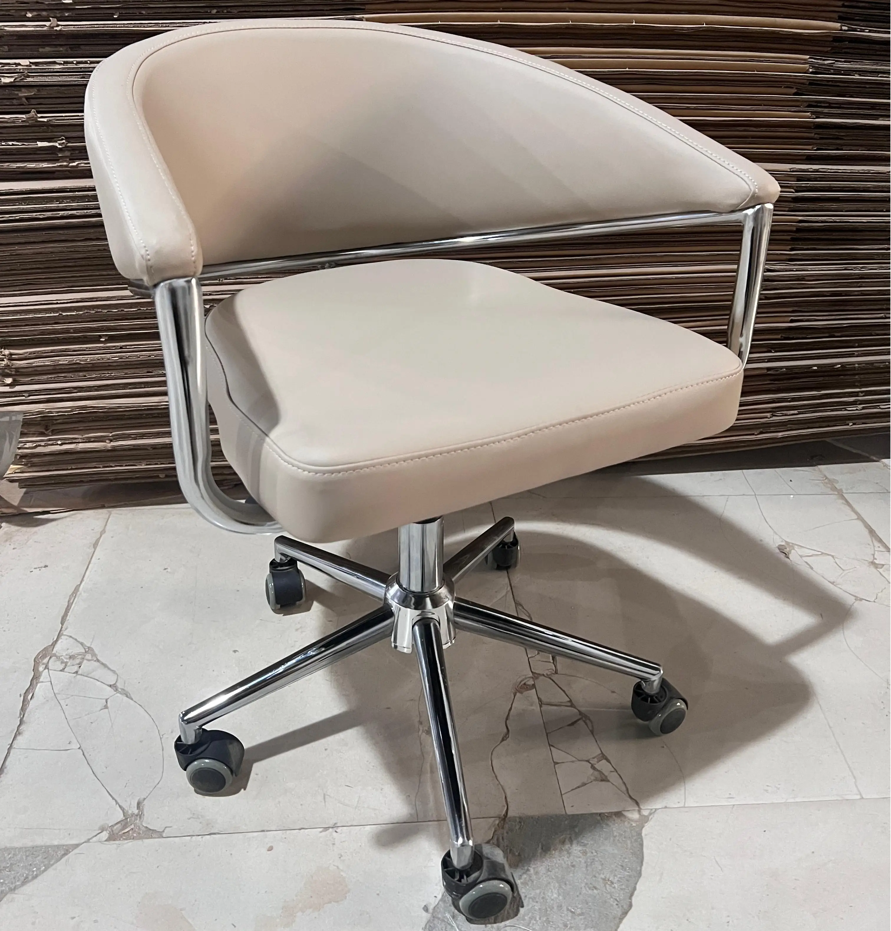 White Back Ergonomic Office Chair Manicure Customer Waiting Chair Retractable with Universal Wheel