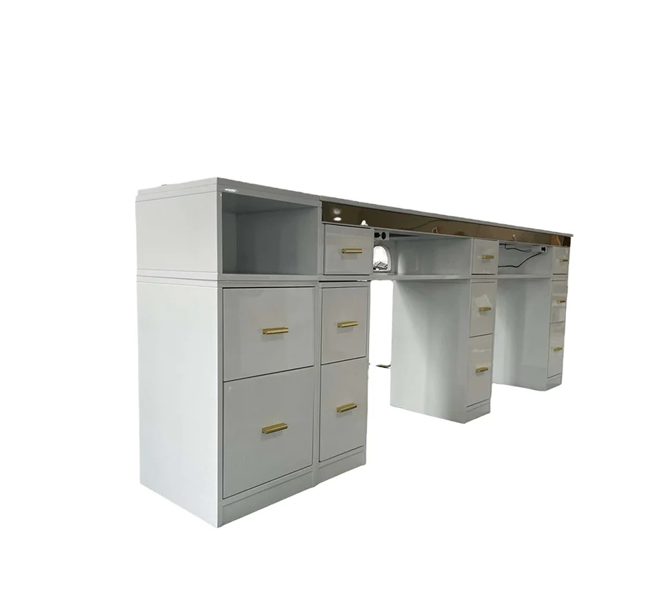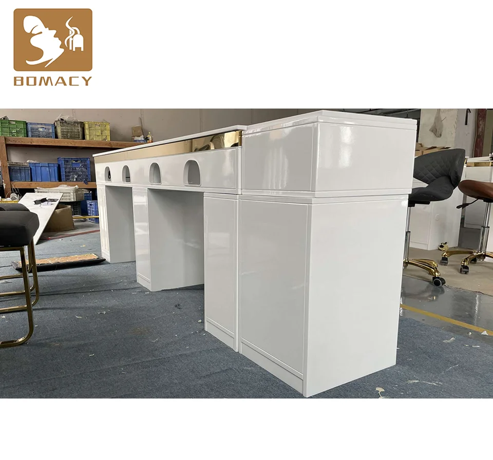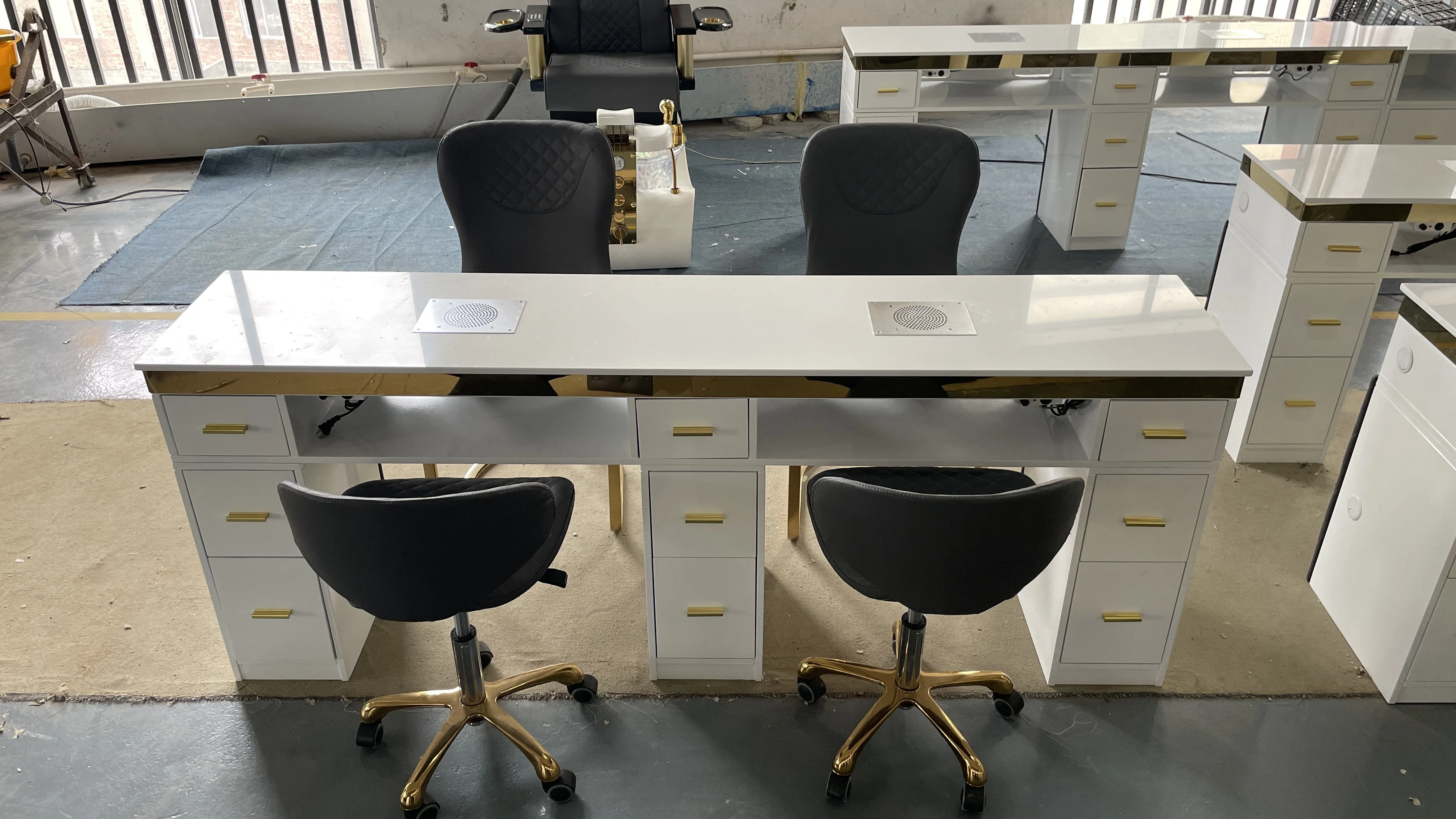 White Nail Desk Table Marble on Top Profesional for Nail Salon Manicure Modern Luxury Nail Tech Table and Chair Light Luxury